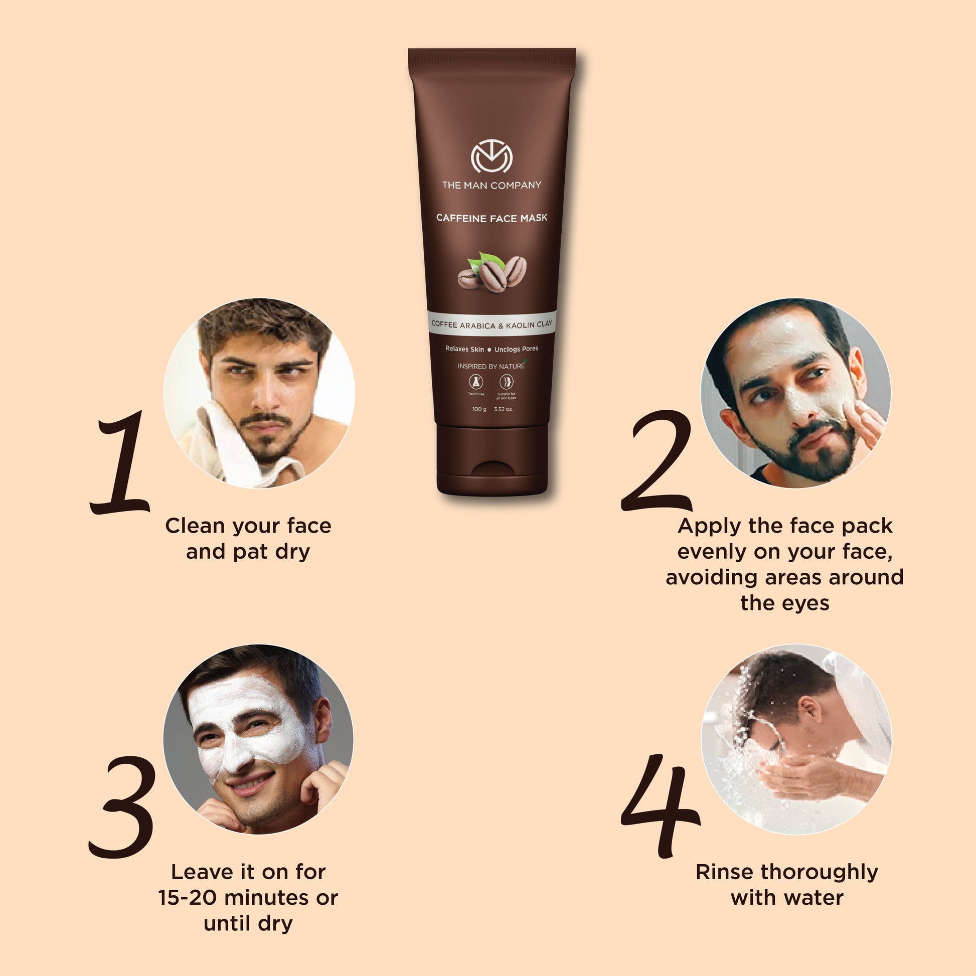 Your skin needs a breather from all the pollutants and stress it is subjected to. This face pack for men with Caffeine and Kaolin clay helps relax your skin and unclog pores for letting it breathe better.